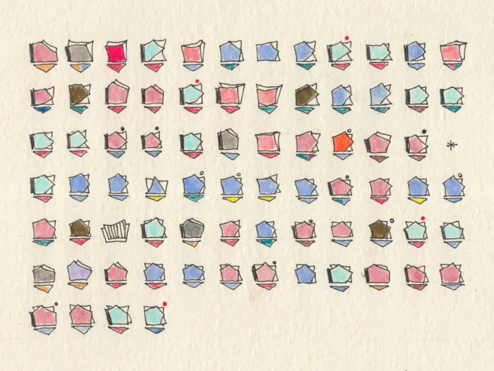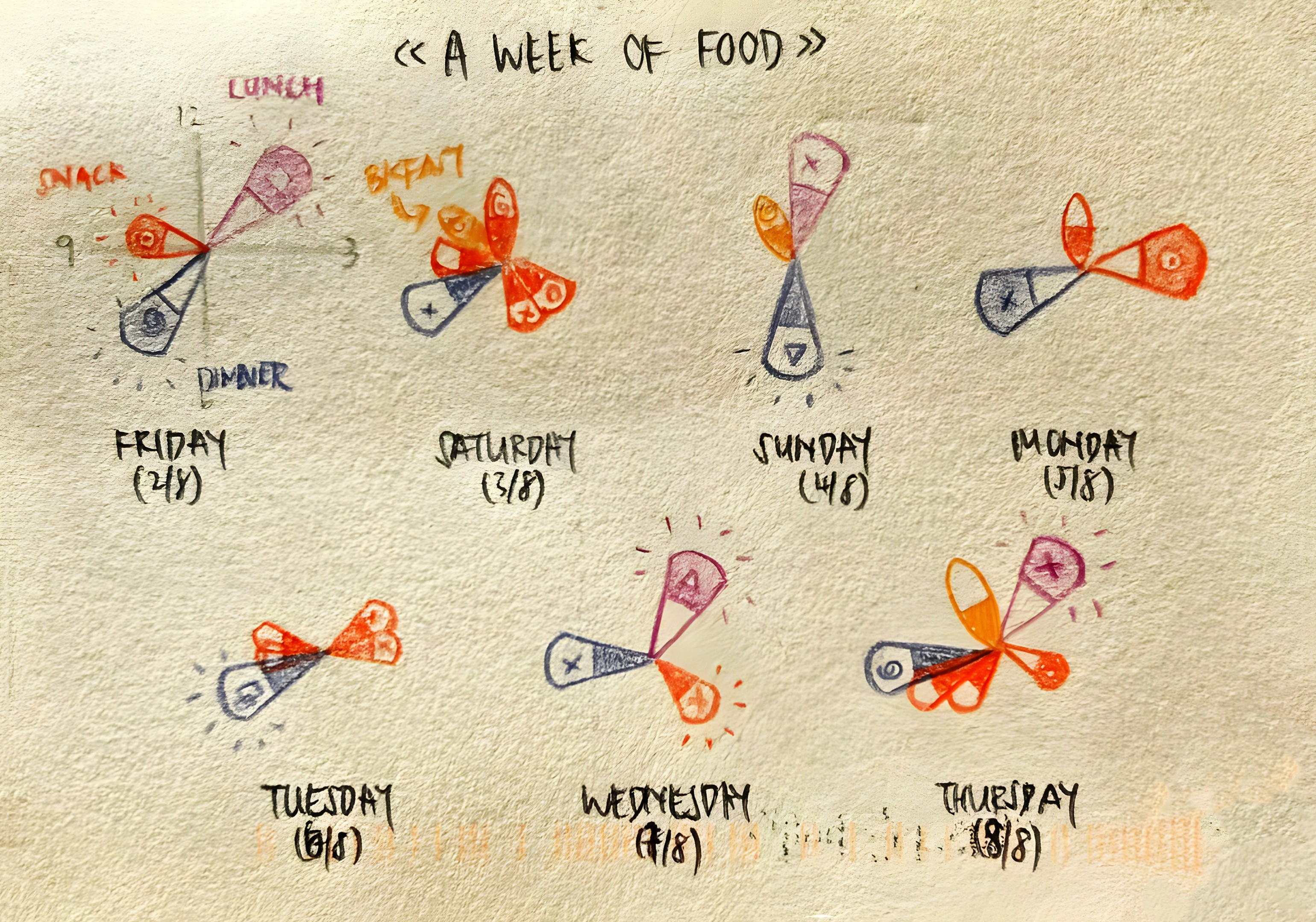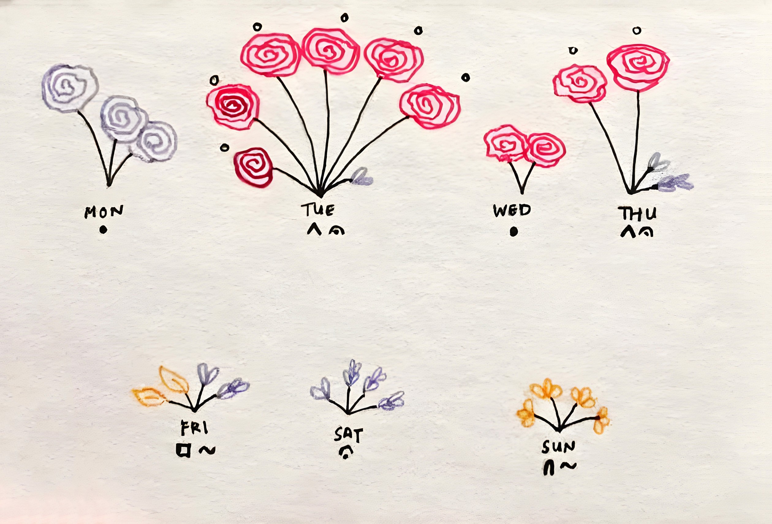 Dear Data is a data-drawing project originally created by Giorgia Lupi and Stefanie Posavec, who would collect a week's worth of personal data, draw the data on a postcard, and send it to each other as pen pals!